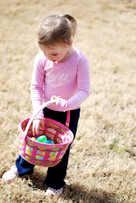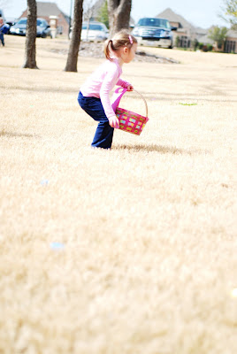 Some pictures from our neighborhood Easter Party on Saturday. The girls were really excited to meet the Easter bunny and she, (yes, the bunny is a "she"!) brought her friend, Peter Rabbit, along for the day. As you can see, this was an actual, live bunny and the kids went NUTS when he was unveiled . Everyone got a turn to pet him and then it was off to the Easter egg hunt! I just cannot explain how fun it is to have kids who understand and enjoy these things...